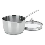 Inspired by the great French kitchens, Cuisinart began making professional cookware almost 30 years ago. Top quality construction joins the premium stainless exterior with solid aluminum encapsulated into the base, ensuring unsurpassed heat distribution. Bonded to a stainless steel interior, Chef's Classic Stainless offers the professional performance that lets you celebrate the fine art of cooking , with consistently delicious results.A time and space saver, the pour saucepan is a necessity for today's kitchens. The pour spout and draining lid ensure drip-free pouring -two different-sized draining holes provide superior control.