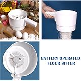 The perfect sifter for those who have trouble turning a crank or squeezing a handle. This 4-cup capacity sifter is battery-operated; just push the button to run. Commercial flour is usually pre-siftedand compacted at the mill. Re-sifting make the flour fluffy again. Cakes, muffins, and breads are much lighter in texture when flour is sifted before being added to dough or batter. Stainless Steel mesh screen will not rust or corrode Plastic body and easy to clean. Great tool for Arthritis Sufferers. Each Requires C battery (Not Included)